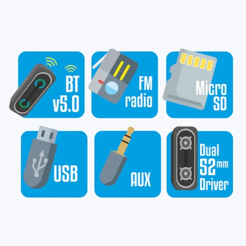 - Multi-connectivity options: Wireless BT/ AUX/ mSD/ USB
